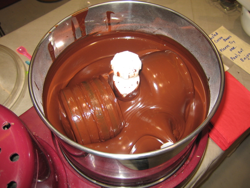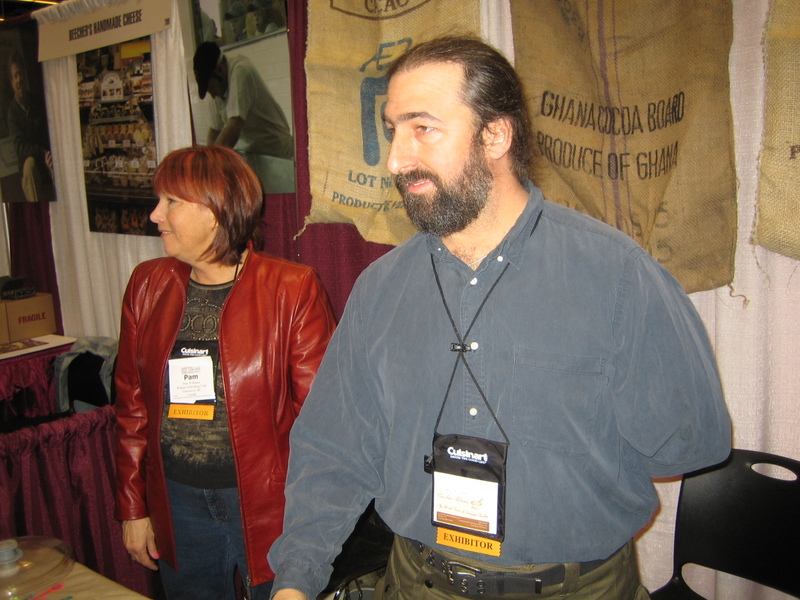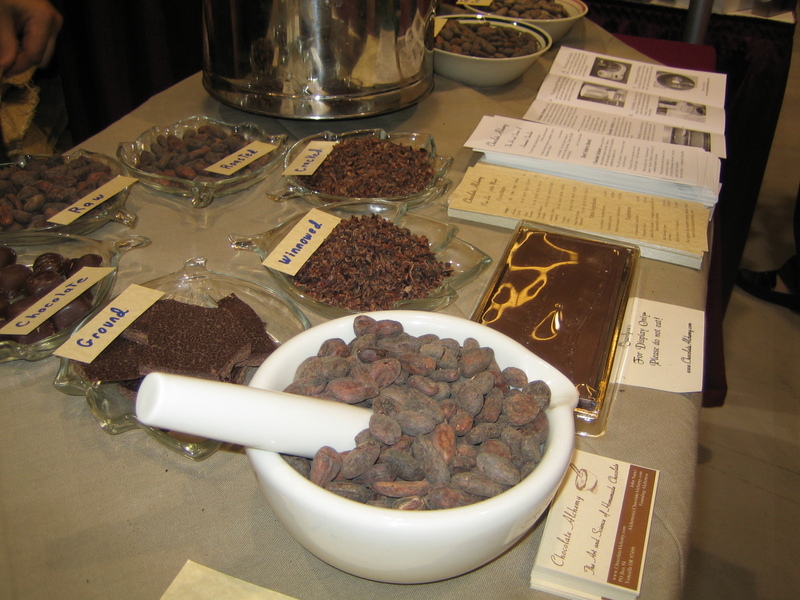 The most fascinating gadget I saw at the recent IACP convention in Seattle was a device used to make chocolate from ground-up cocoa beans. This is meant to be a home-based system, invented by John Nanci of Yoncalla, Oregon. Also known as ‘Alchemist John’, he’s a chemist who decided to try making his own chocolate from cocoa beans after tasting some that
