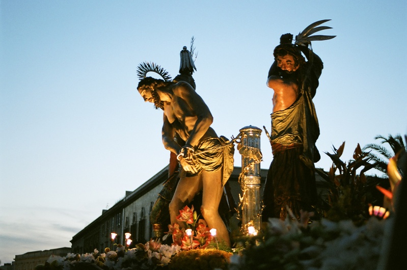 The sun is setting on Good Friday in the city of Trapani, western Sicily. It’s not too far from where my father’s parents came from, and they probably came to watch this procession a hundred years ago just like I am today.
