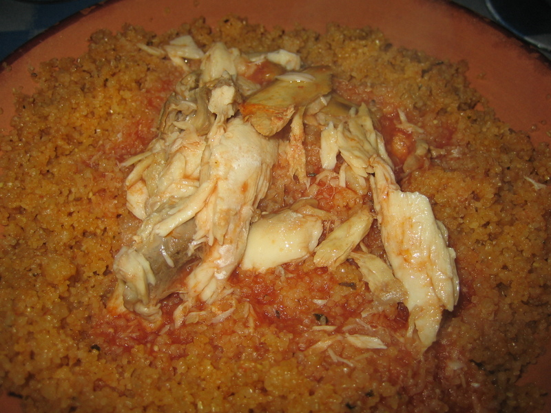 Later that night at dinner I tried a Trapanese specialty, fish cus cus. This is a dish brought to the region by the Arabs when THEY ruled Sicily in the 9th century. Delicately scented tomato broth containing poached fish and/or shellfish is ladled over couscous, small grains of durham semolina pasta. The broth is scented with cinnamon and nutmeg, which is very Arabic in nature.