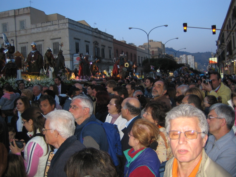Every Good Friday for hundreds of years the people of Trapani have carried the Misteri through the streets of the city. They are huge wooden sculptures depicting the Passion and the death of Jesus. They are carried on the shoulders of men who stamp out their slow steps to the music of the bands.