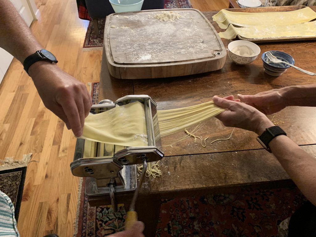 I grew up in a family where my mother spent much of her day in the kitchen or in the garden (that’s her on the left with a 3.5 pound tomato from the garden).Spending the time harvesting vegetables like peas, corn, beans, lettuce, tomatoes and more in the garden meant lots of time spent processing them in the kitchen. And yet she always made the time to put a really decent meal on the table for our family of five. She knew how to cook, how to shop for what she didn’t have in the garden, and didn’t have a huge collection of cookbooks. She clipped recipes from newspapers and magazines and taped them into a big notebook. The ‘tips’ she gleaned from her readings were cut out and taped to the inside of the kitchen cabinet doors. I’m lucky that I frequently watched her cook and helped her with shopping and in the garden and picked up the basics of cooking almost by osmosis, because before I left home I never really cooked anything but still knew how most things worked in the kitchen.